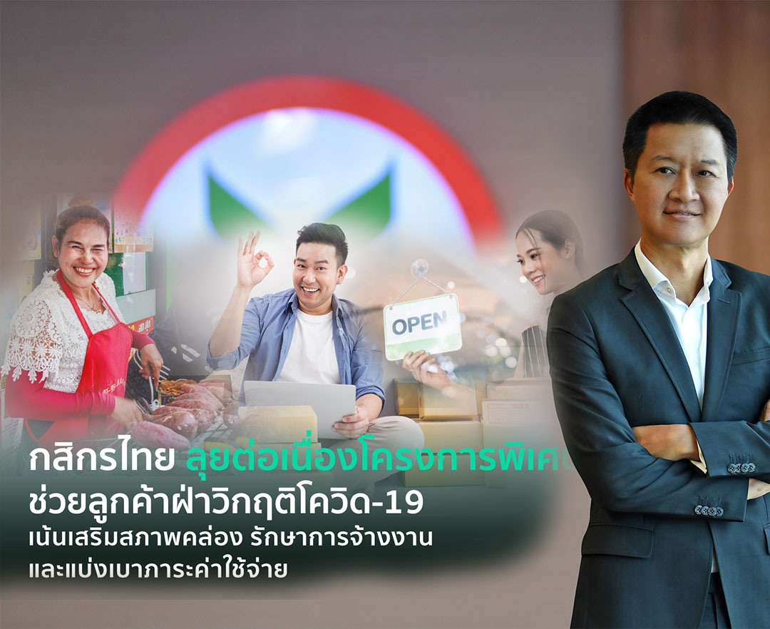 กรุงเทพฯ-ธนาคารกสิกรไทย ยังคงลุยต่อโครงการพิเศษช่วยเหลือฝ่าวิกฤติโควิด-19 ที่ดำเนินมาปีกว่าแล้ว เน้นเพิ่มสภาพคล่องธ...