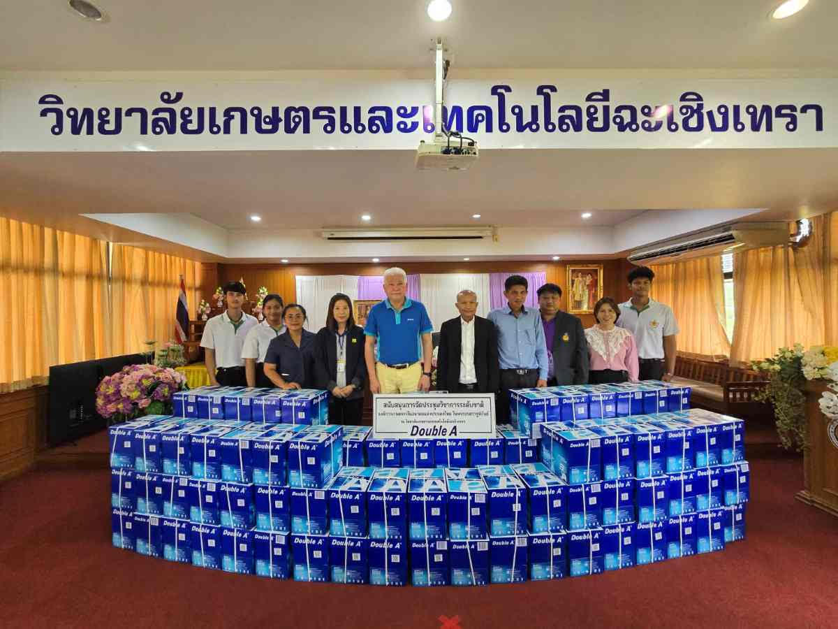 ฉะเชิงเทรา-นายชาญวิทย์ จารุสมบัติ รองกรรมการผู้จัดการใหญ่ ดั๊บเบิ้ล เอ เป็นตัวแทนมอบผลิตภัณฑ์กระดาษพิมพ์เขียนค...
