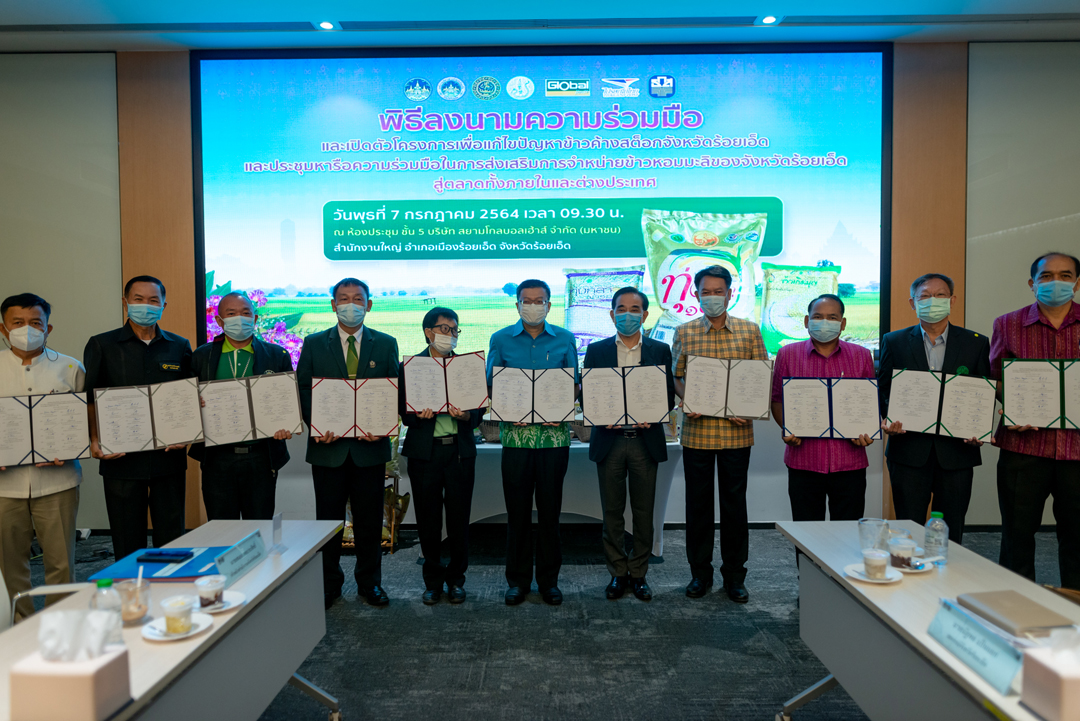 ร้อยเอ็ด-ผู้ว่าราชการจังหวัดร้อยเอ็ด ลงนามความร่วมมือแก้ไขปัญหาข้าวค้างสต็อก และส่งเสริมการจำหน่ายข้าวหอมมะลิฯ
