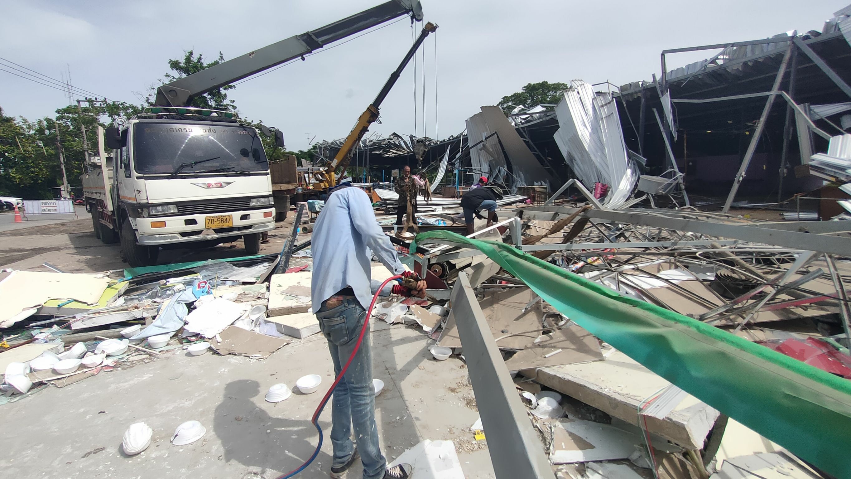ราชบุรี - คืบหน้า เข้ารื้อถอนโครงสร้างตลาดถล่ม หลังถูกพายุพัดกระหน่ำพังทั้งหลัง
