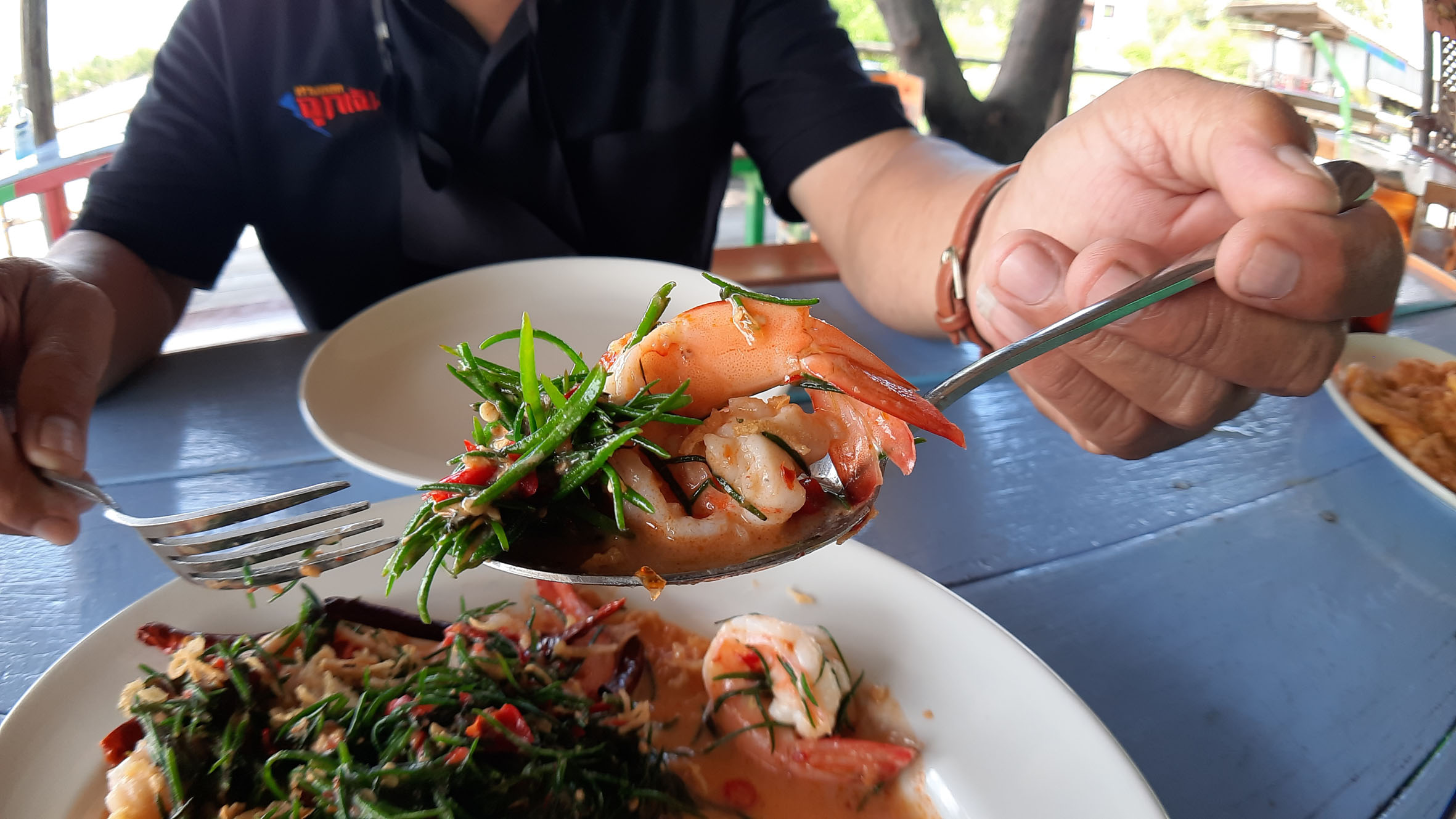 สมุทรปราการ-ชวนชิม ยำชะครามกุ้งสด อาหารพื้นบ้าน ร้านอาหารปูสด พระสมุทรเจดีย์ เค็มนิดหวานหน่อยอร่อยลิ้น