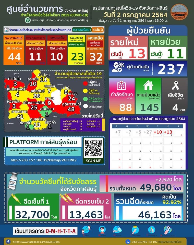 คลัสเตอร์กทม.ทำกาฬสินธุ์มียอด13ราย กุนซือรมว.คค.ให้กำลังใจอสม.