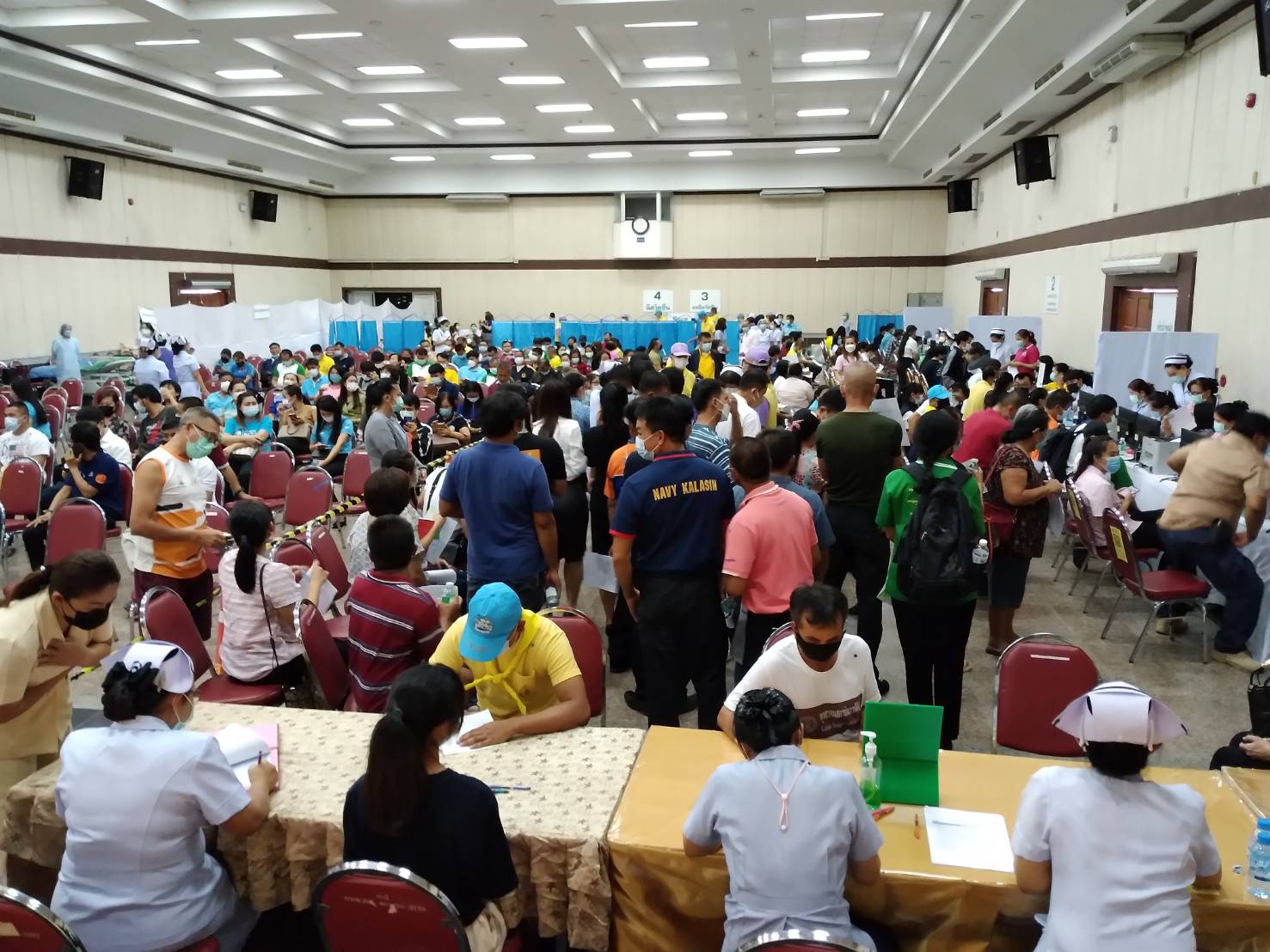 กาฬสินธุ์-จิตอาสาพระราชทาน 904 จังหวัดกาฬสินธุ์ ให้กำลังใจข้าราชการ ประชาชนทั่วไป ที่เข้ารับการฉีดวัคซีนซิโนแวคเข็มแรก โ...