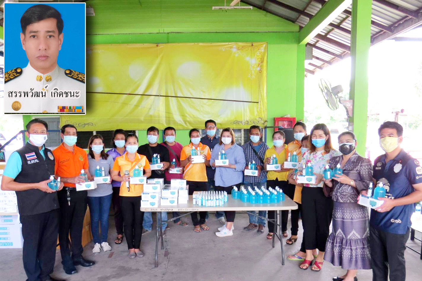อบต.ท้ายตลาดแจกแมสก์-เจลชาวบ้าน