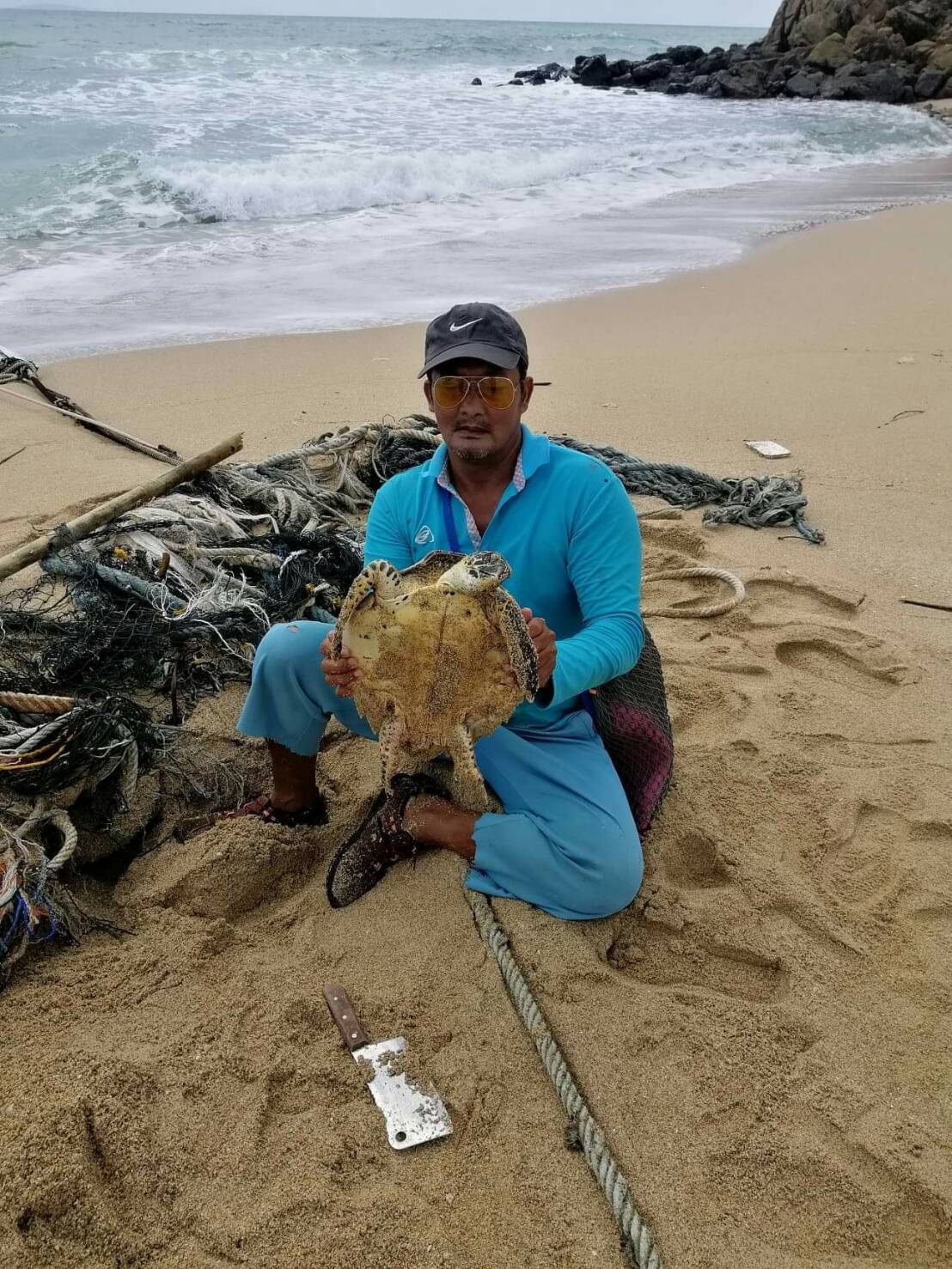 สลด!พบเต่าทะเลติดซากอวนรอด1ตาย1