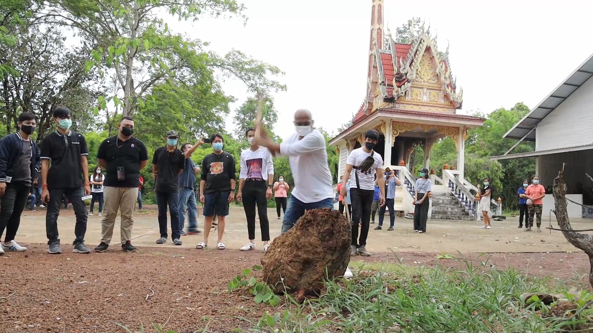อุดรธานี-หมอปลามาบ้านน้องเนเน่ พบหินรูปกะโหลกคนโบราณนำทุบหน้าเมรุ