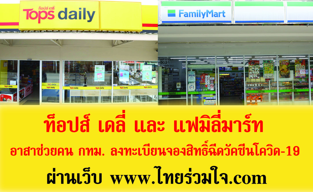 กรุงเทพฯ-ทอปส์ เดลี่ และ แฟมิลี่มาร์ท อาสาช่วยคน กทม. ลงทะเบียนจองสิทธิ์ฉีดวัคซีนโควิด-19 ผ่านเว็บ...