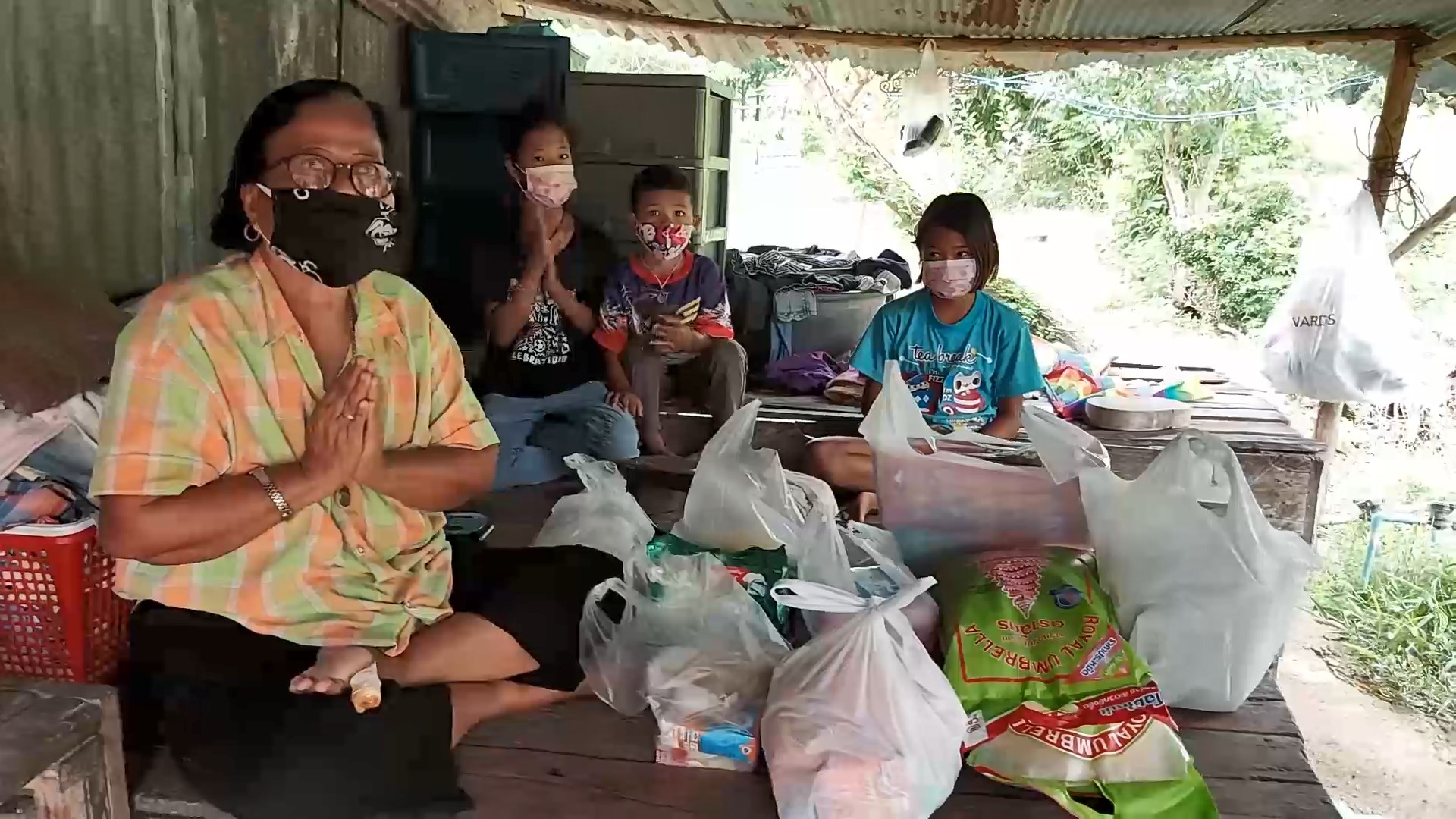 สงขลา-เกจิดังภาคใต้ให้ตัวแทนนำข้าวสารอาหารแห้งมอบให้ชาวบ้านที่ถูกผลกระทบจากโควิด 19