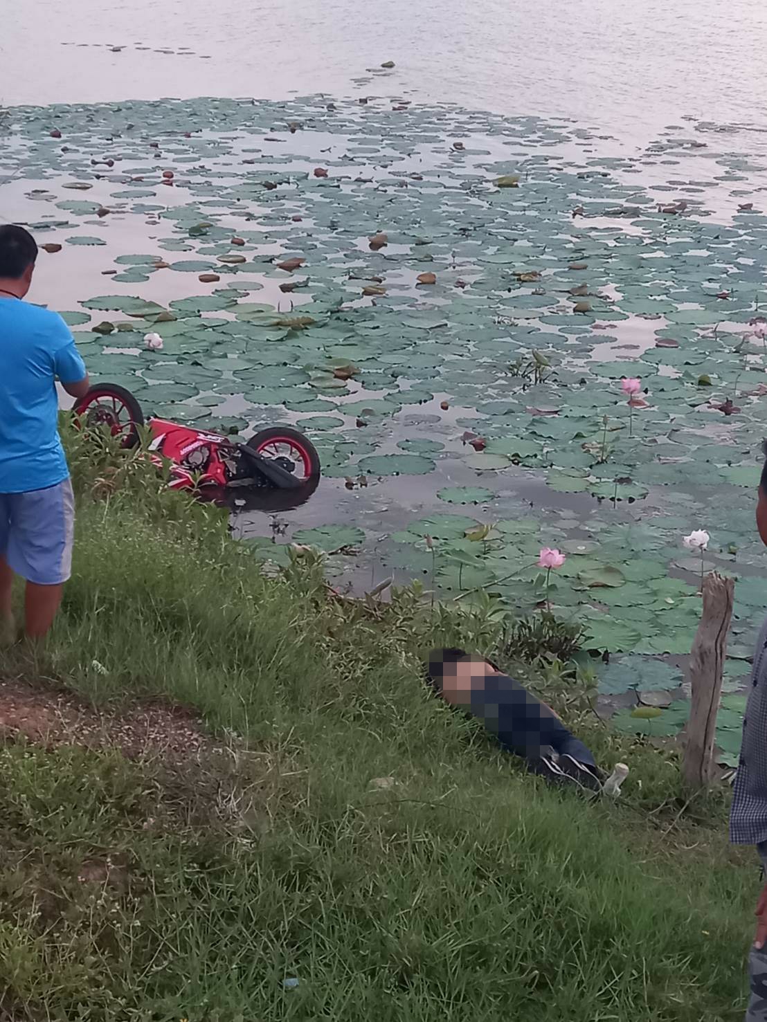 'บิ๊กไบค์'หลุดโค้งตกอ่างเก็บน้ำดับคาที่