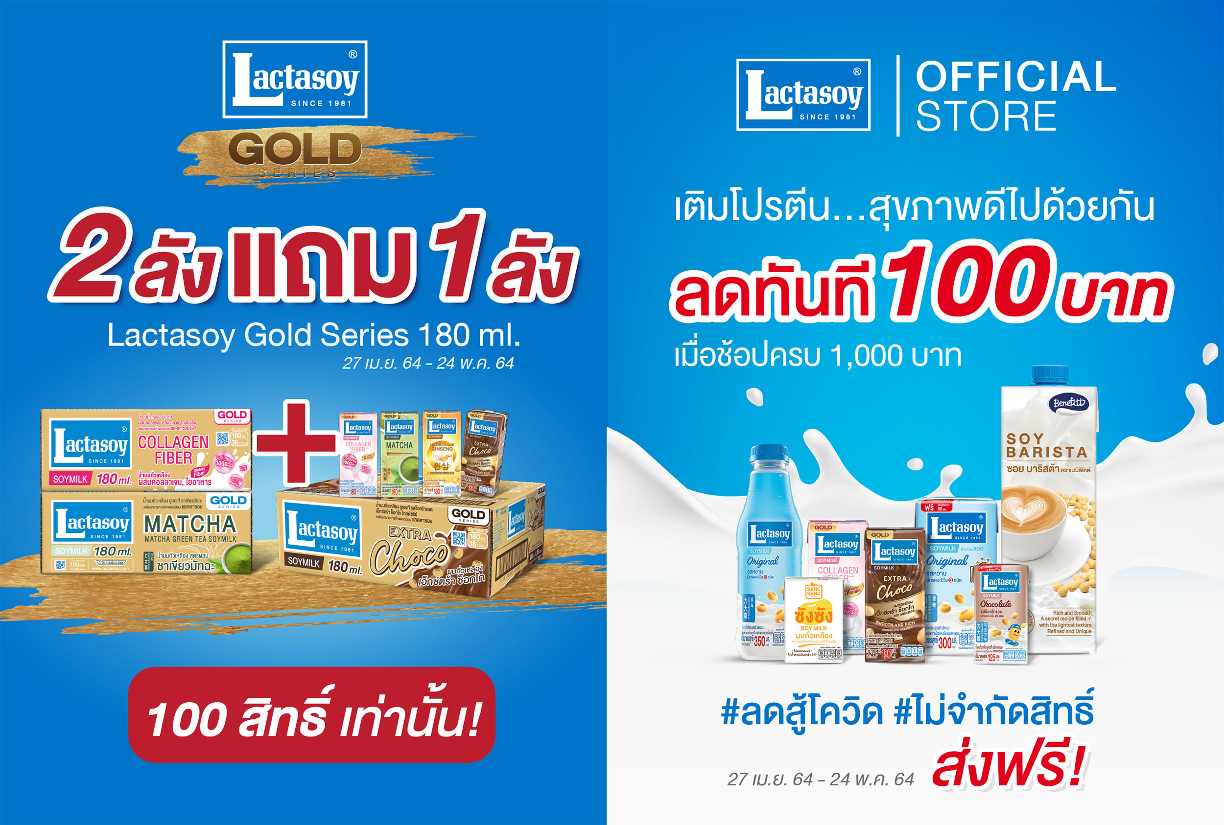 กรุงเทพฯ-“แลคตาซอย” จัดโปรฯ สู้โควิด-19 สั่งซื้อ “โกลด์ซีรีย์” 2 ลังรับอีก 1 ลังพร้อมช้อปผลิตภัณ...
