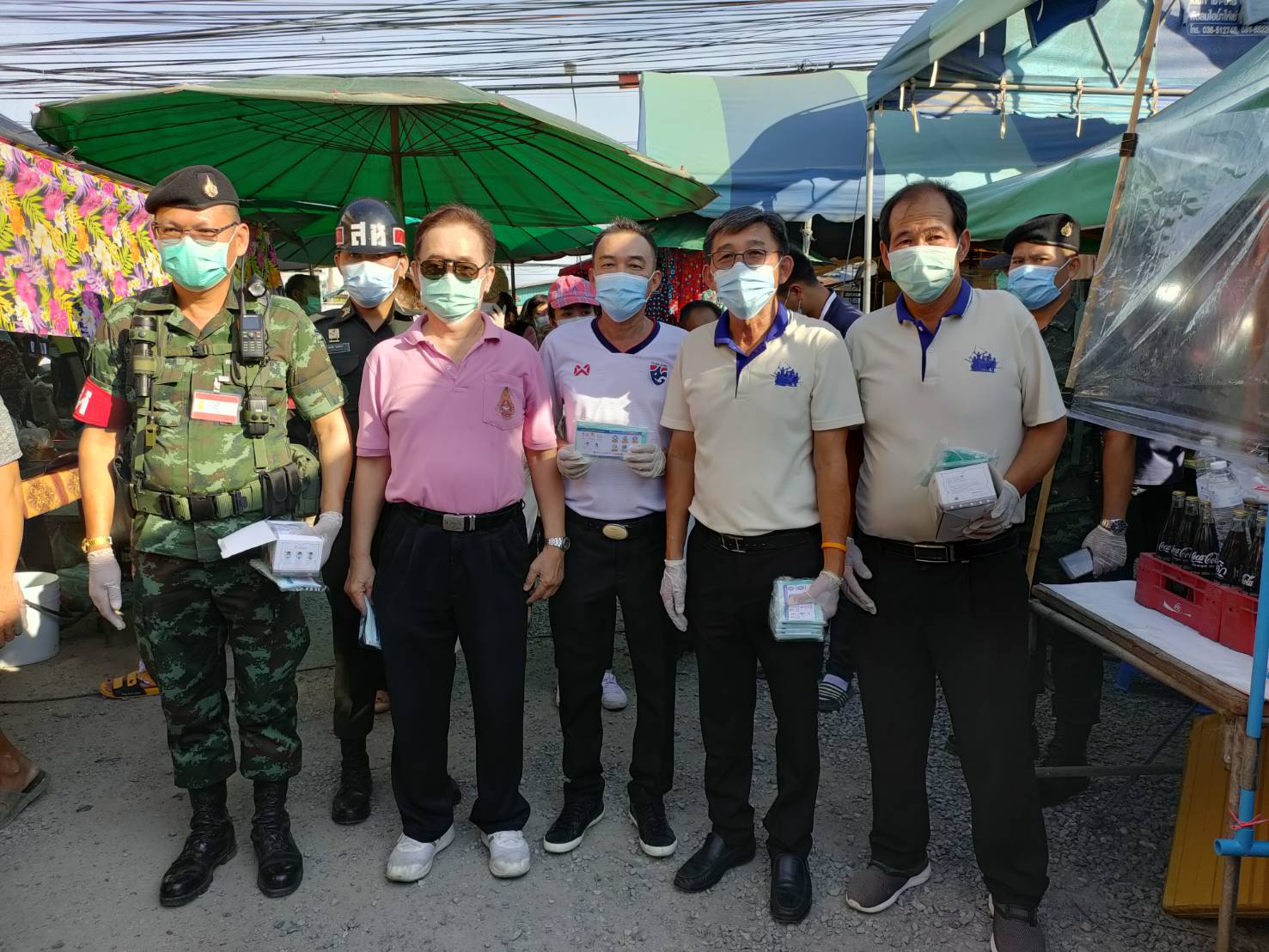 อบจ.ร่วมกอ.รมน.สิงห์บุรีแจกแมสก์-เจล