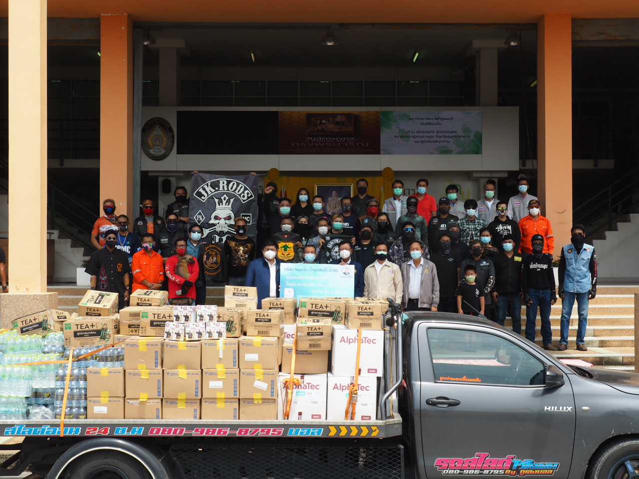 สมุทรปราการ-ชนม์สวัสดิ์ อัศวเหมประธานหอการค้าจังหวัดสมุทรปราการร่วมกับกลุ่มบิ๊กไบค์นำสิ่งของมอบให้โรงพยาบาลสนาม