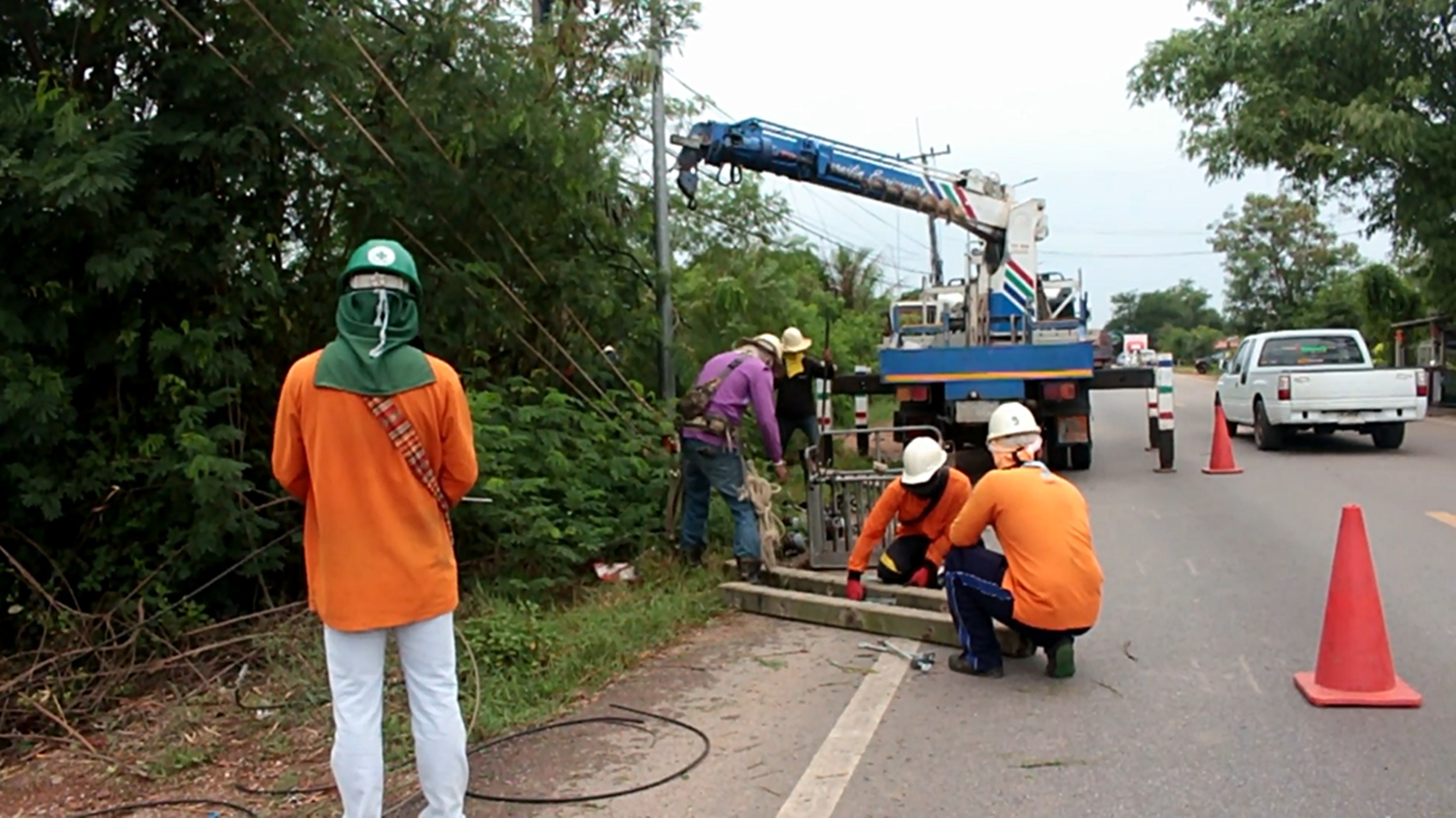 เร่งซ่อมเสาไฟหลังถูกพายุพัดหักโค่น ไฟดับเป็นบริเวณกว้าง