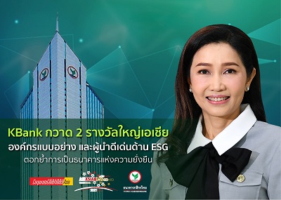 กรุงเทพฯ-กสิกรไทย คว้า 2 รางวัลยกย่องการดำเนินธุรกิจด้านสิ่งแวดล้อม สังคม และธรรมาภิบาลที่ดีในระดับเอเชีย