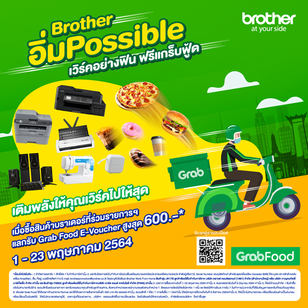กรุงเทพฯ-Work From Home ระลอกนี้ไม่มีหิว กับแคมเปญ Brotherอิ่มPossibleเวิร์คอย่างฟิน ฟรี! Grab Food