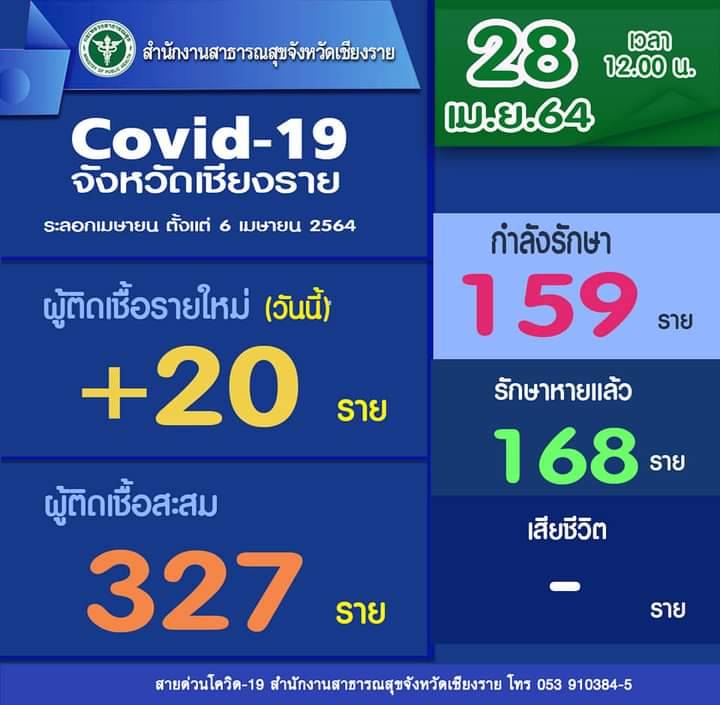 เชียงราย-สสจ.เชียงราย เผย มีผู้ป่วยเพิ่มขึ้นวันนี้ 20 ราย รวมผู้ป่วยสะสม 327 ราย และรักษาหายแล้ว 168 ราย คณะทำงานพ...