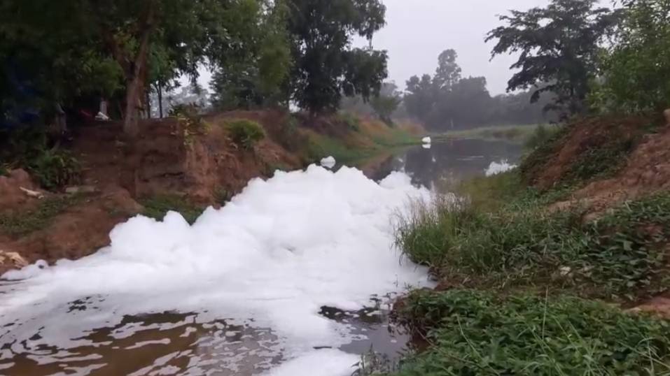 คนศรีมหาโพธิ์ผวาน้ำคลองเกิดฟองโฟม