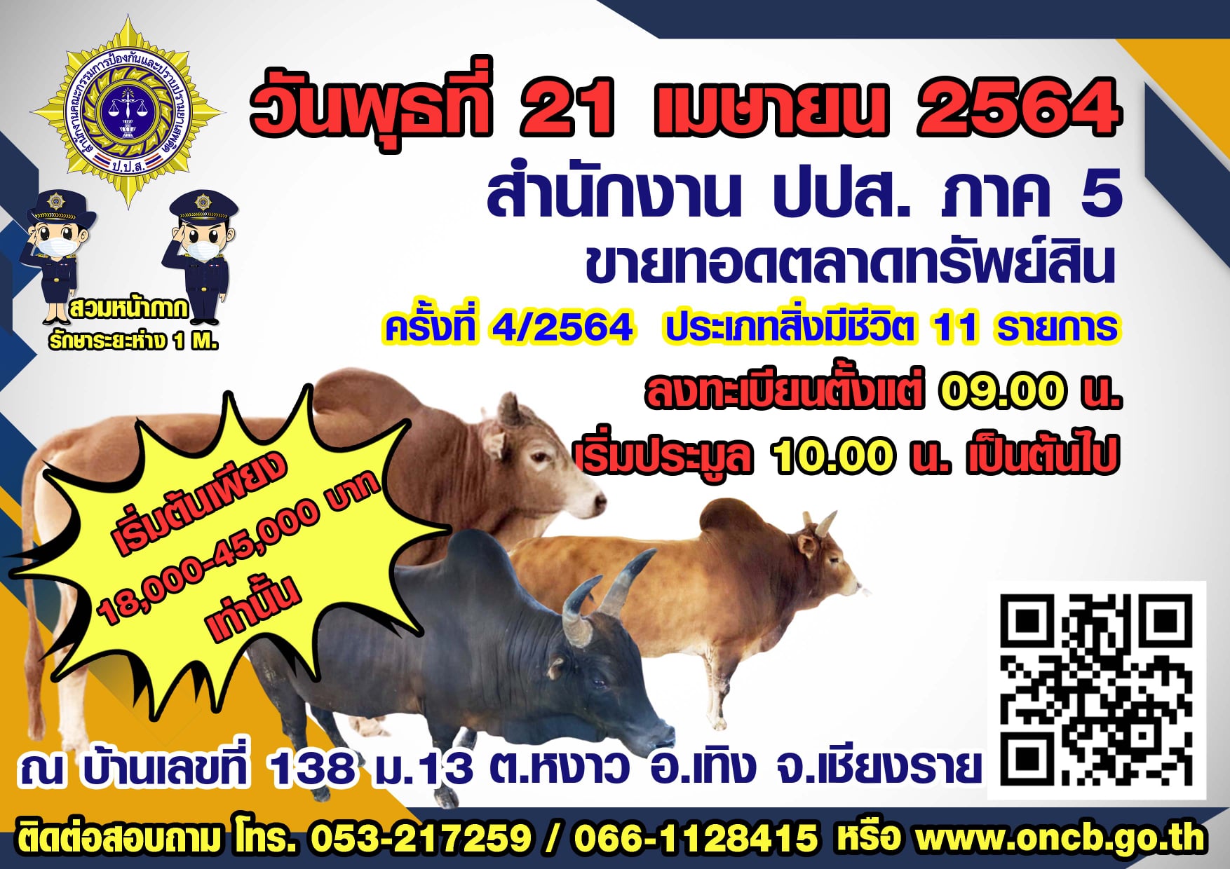 เชียงราย-ป.ป.ส. นำโคชนพันธุ์พื้นเมือง จำนวน 11 ตัว ขายทอดตลาดเนื่องจากเป็นทรัพย์สินที่ไม่เหมาะสมที่จะเก็บรักษาไว้ มูลค่า...