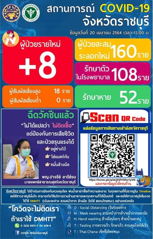 ราชบุรี-ราชบุรีติดเชื้อเพิ่มอีก 8 ราย ยอดรวม 160 ราย เผยเกี่ยวพันธ์กับผู้ป่วยเชียงใหม่ สทุทรสาครและกรุงเทพฯ
