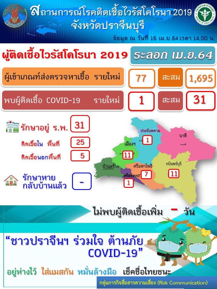 ปราจีนบุรี-โควิด-19 ยอดพุงไม่หยุดเป็น 31 ราย ล่าสุดติดเด็กชายวัยเพียง 1ขวบ 6เดือนออกประกาศจังหวัดห้ามจัดกิจกรรมต่าง ๆ เก...