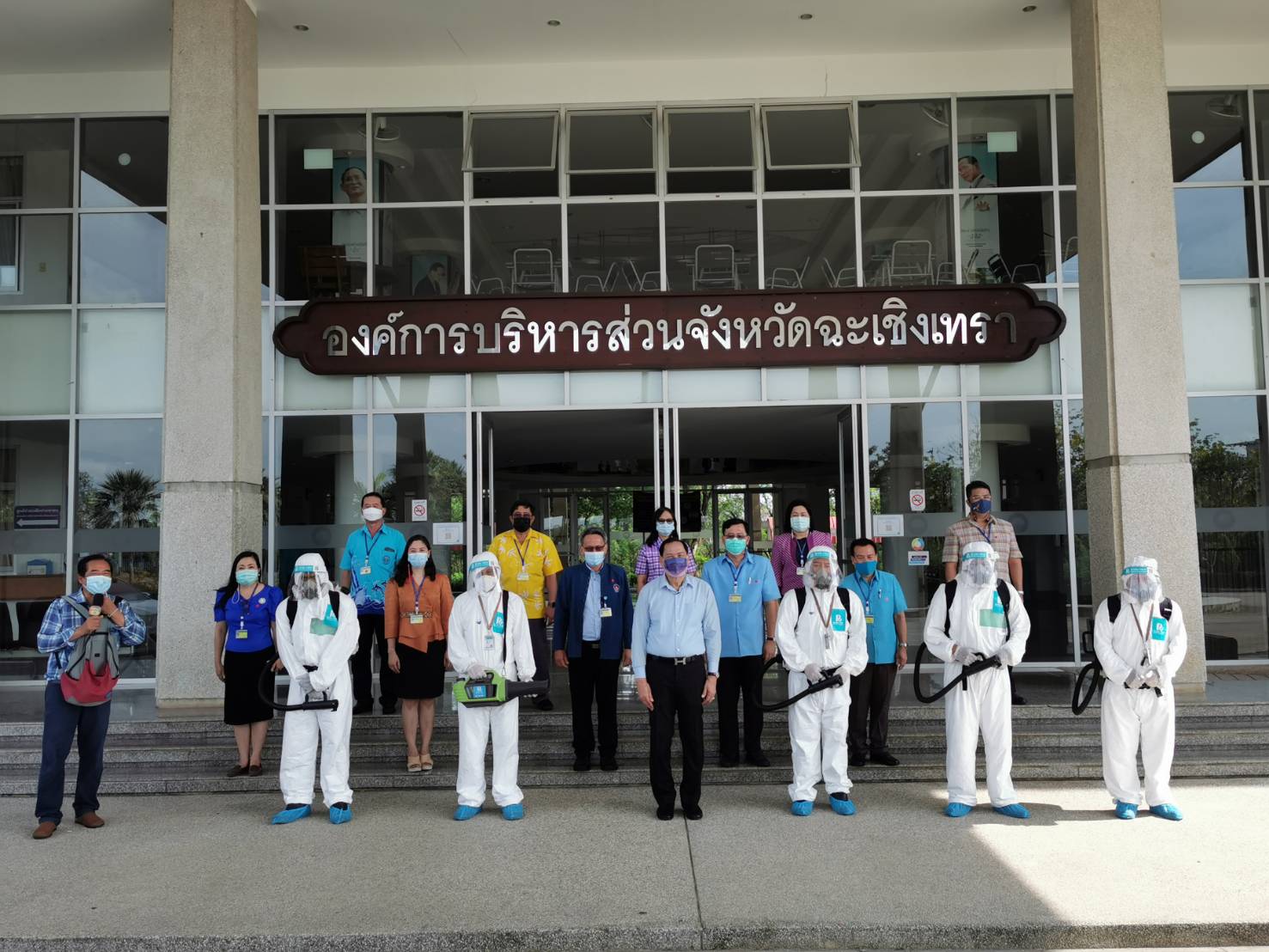 ฉะเชิงเทรา-คำรนต์ หว่างหวังศรีพร้อมทีมงานฉีดพ่นน้ำยาฆ่าเชื้อทำความสะอาด อบจ.ฉะเชิงเทรา