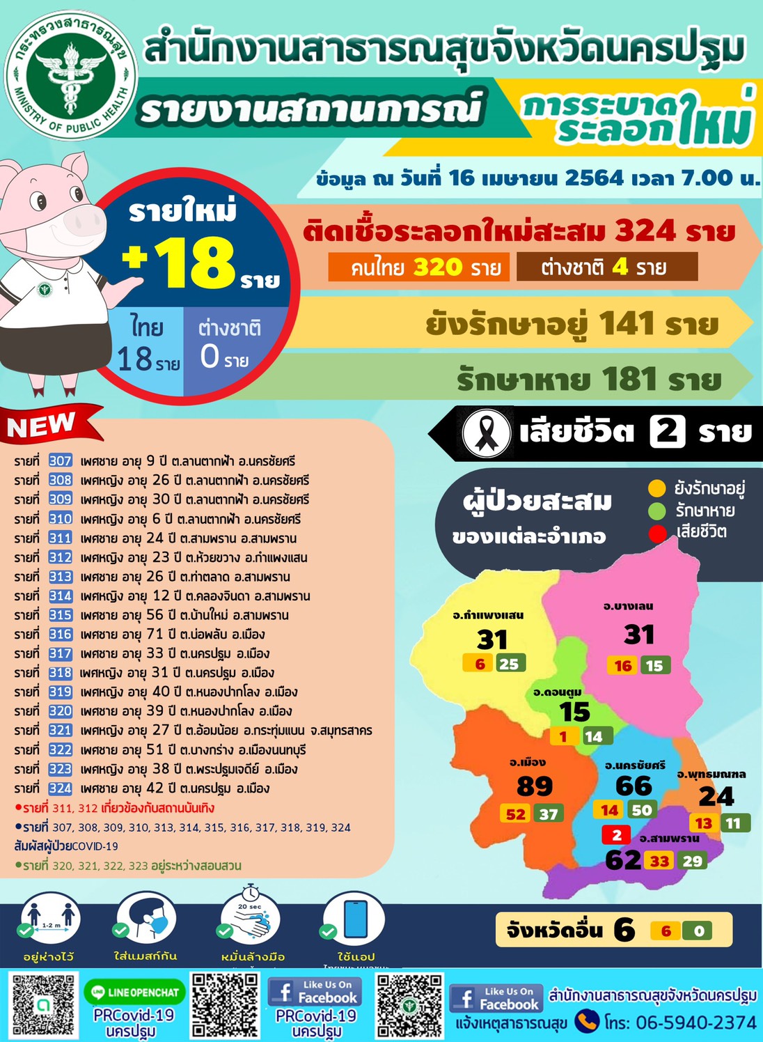 นครปฐมพบผู้คิดโควิดวันนี้เพิ่ม18ราย