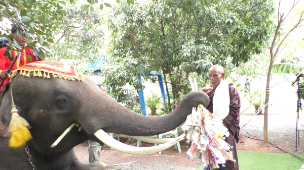 'พลายมงคล'ช้างแสนรู้ทำบุญผะเหวด
