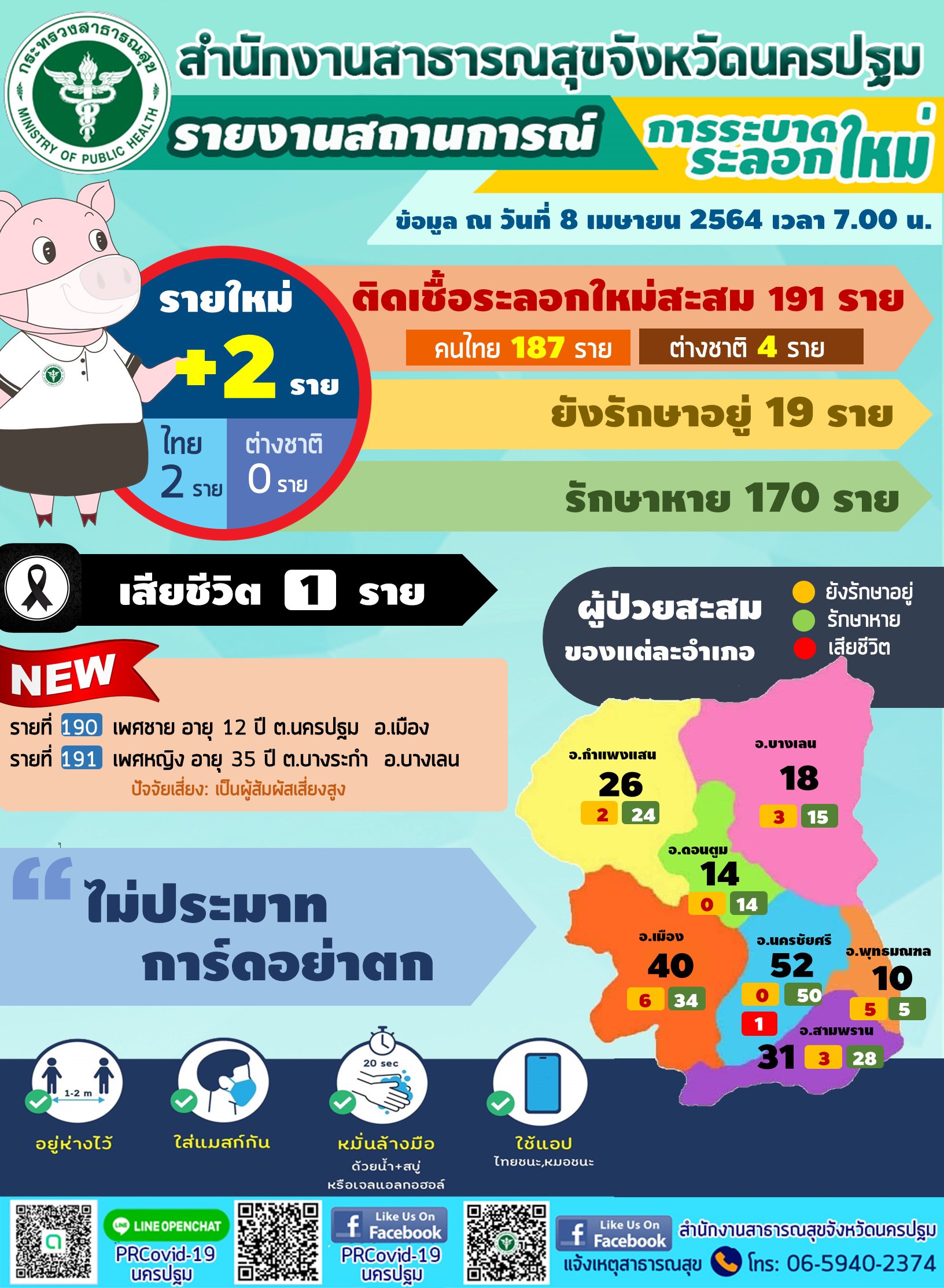 นครปฐม-สถานการณ์โควิด-19จังหวัดนครปฐม ยังพบผู้ติดเชื้อต่อเนื่อง วันนี้ติดเชื้อเพิ่ม 2 ราย ยอดสะสม ใกล้ 200 รายแล้ว โดยยั...