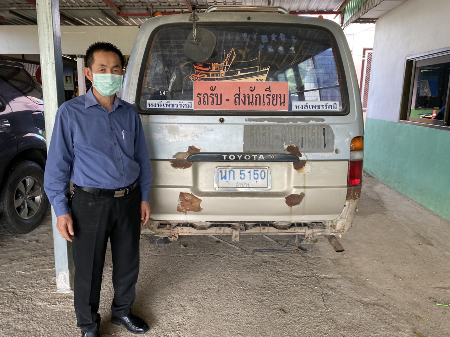 เชียงราย-โรงเรียนบ้านสันถนน อ.แม่สาย จ.เชียงราย มีรถตู้ขึ้นสนิมเขรอะทั่วทั้งคัน ใช้รับส่งนักเรียน หากฝนตก นร.ต้องทนเปียก...