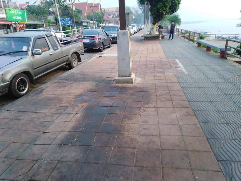 เชียงราย-ร้องเรียน ฟุตบาท ริมแม่น้ำโขง หน้าที่ว่าการอำเภอเชียงแสน จ.เชียงราย เลอะเทอะไปด้วย รอยคราบน้ำมันจากการจำหน่ายอา...