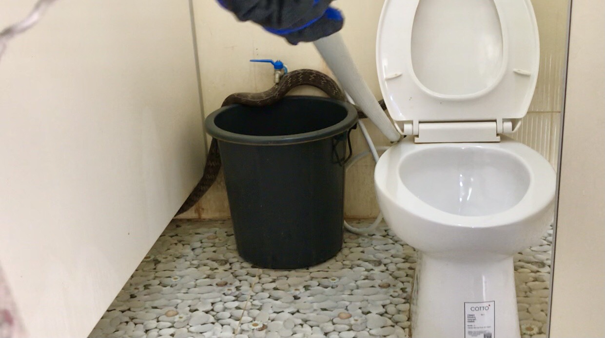 สะดุ้ง!ทั้งพระ-โยมพบงูใหญ่ในห้องน้ำวัด