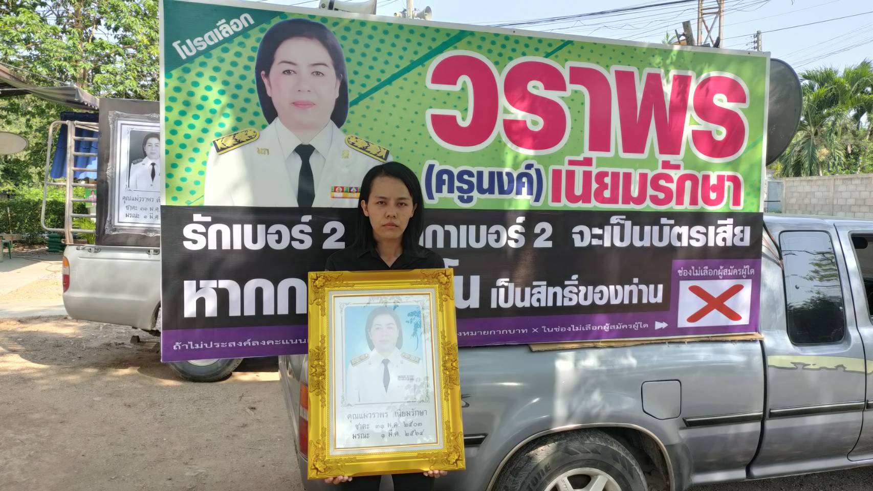 ราชบุรี - ครอบครัวครูนงค์ แต่งชุดขาวดำออกประชาสัมพันธ์เลือกตั้งอย่ากาเบอร์แม่
