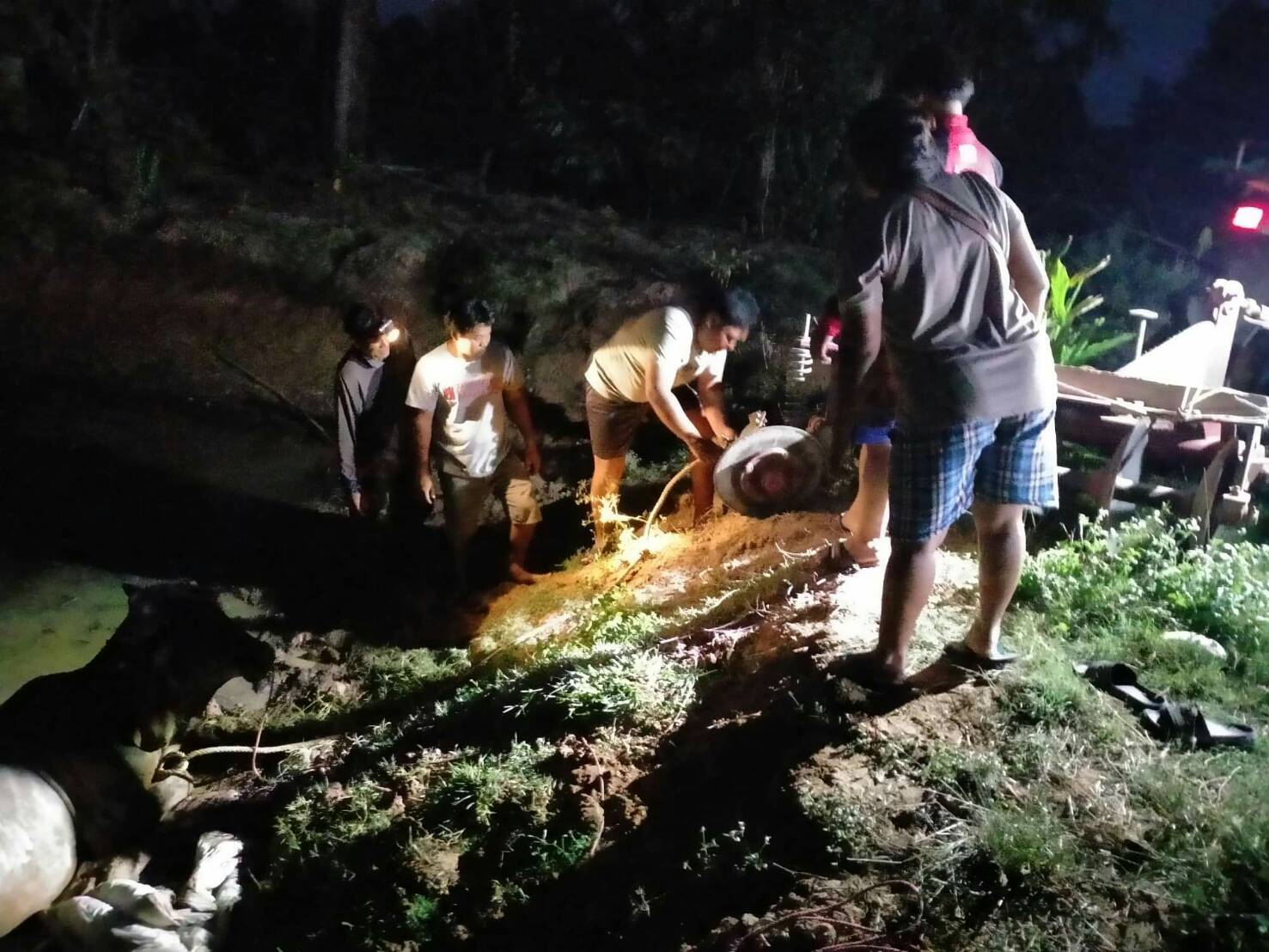 นครราชสีมา-นาทีชีวิตกู้ภัยพร้อมชาวบ้านเร่งช่วยเหลือวัวแม่ลูกอ่อนติดหล่มโคลนนานกว่า 1 ชั่วโมงสุดท้ายช่วยได้อย่างปลอดภัย