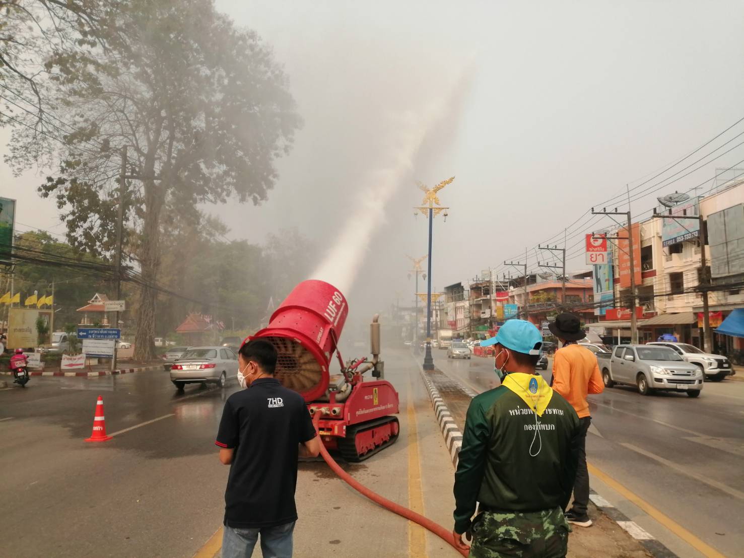 รองมทภ.3นำฉีดพ่นน้ำลดฝุ่นที่แม่สาย