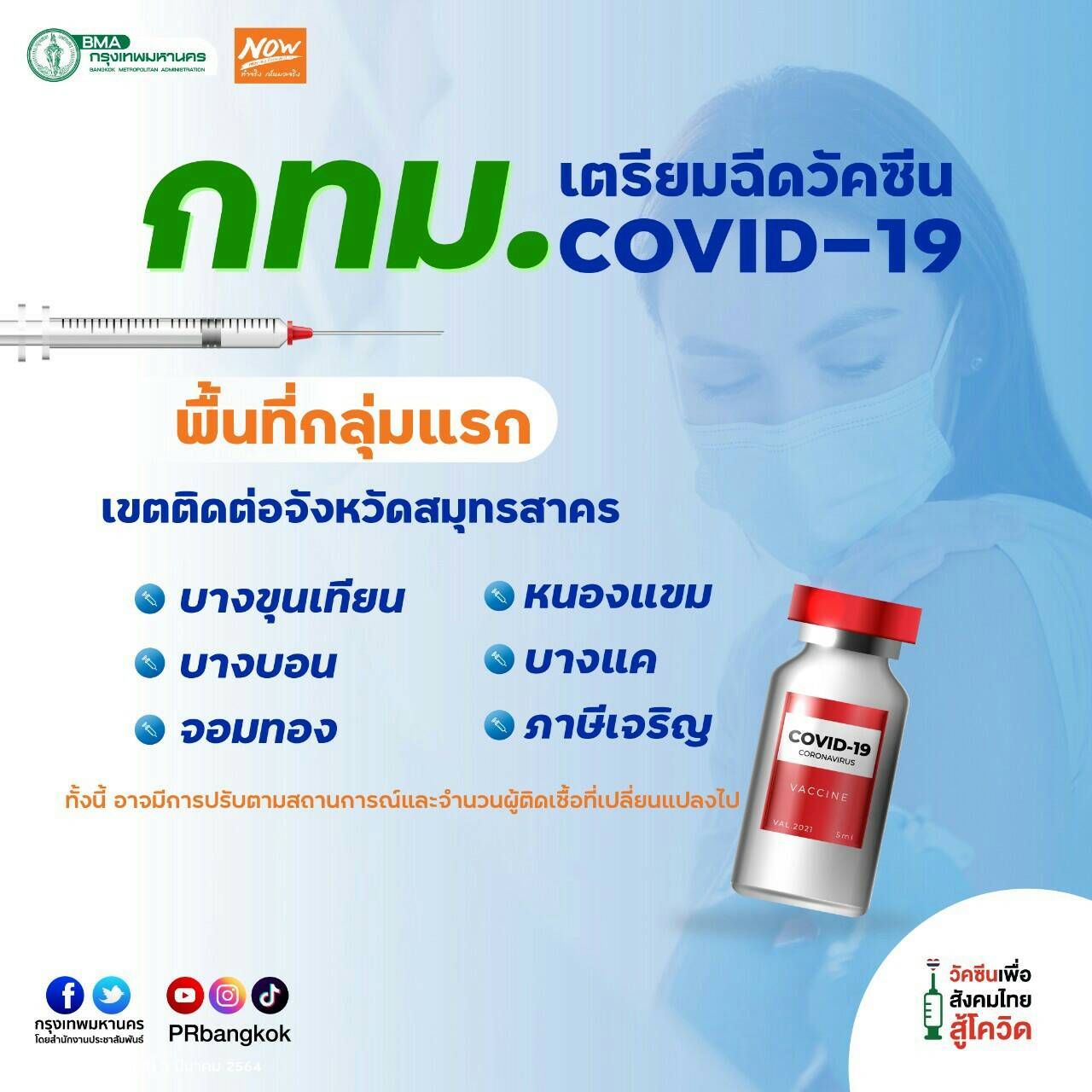 กรุงเทพฯ-กทม.เตรียมฉีดวัคซีนโควิด-19 แก่ประชาชน 7 กลุ่มโรค ในพื้นที่ 6 เขต ระหว่างวันที่ 15-31 มี.ค.64
