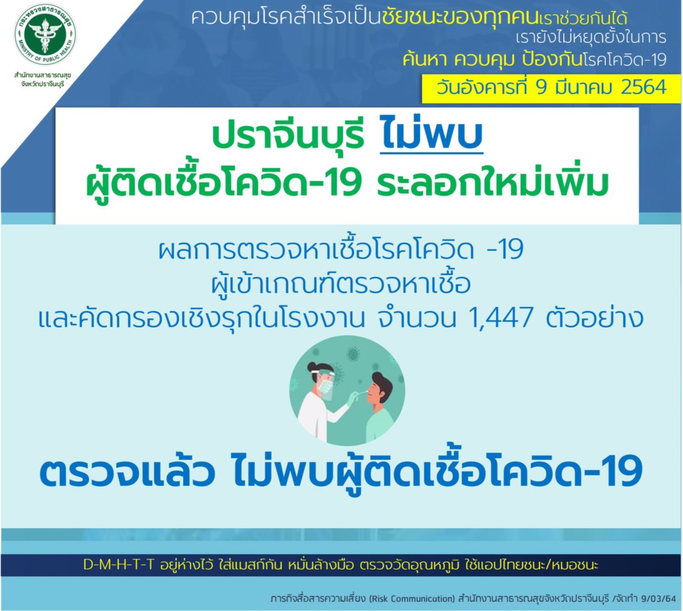 ปราจีนบุรี-หนุ่ม-สาวฉันทนาเฮ! โรงงานดังตรวจเชื้อโควิด-19 จำนวน 1,447 ตัวอย่างผลตรวจล่าสุดมีผลเป็นลบ ไม่พบผู้ติดเชื...