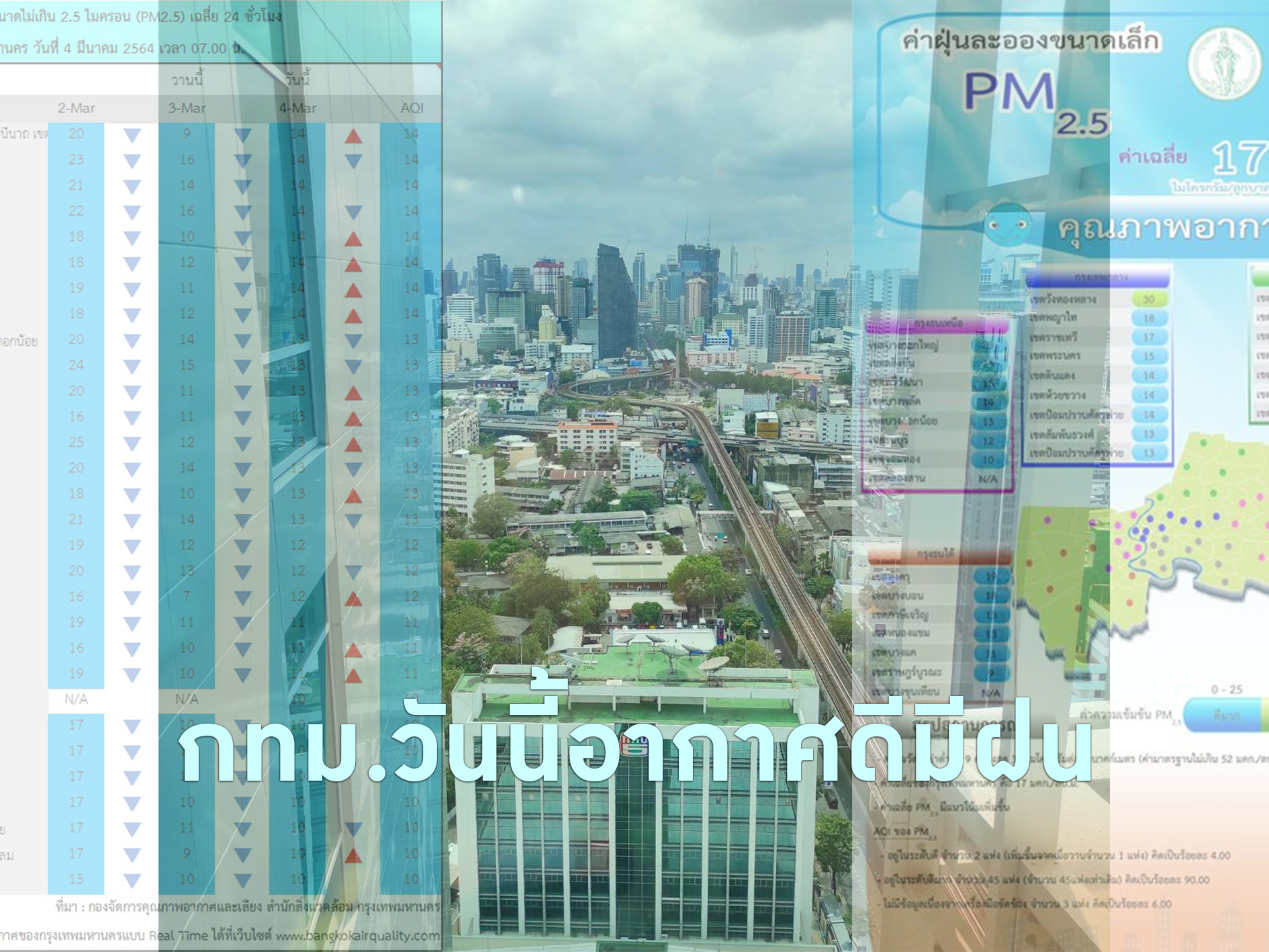 กทม.วันนี้อากาศดีแต่มีฝนฝุ่นPM.25ต่ำ