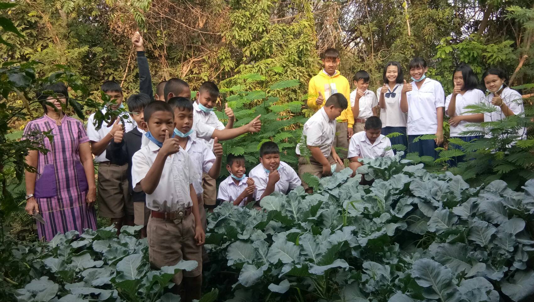 เพชรบูรณ์-นักเรียนโชว์ผลิตผลทางการเกษตรที่งอกงาม ดอกผลใหญ่ และดก หน้าป้ายโรงเรียน ทำให้สะดุดตาผู้พบเห็น