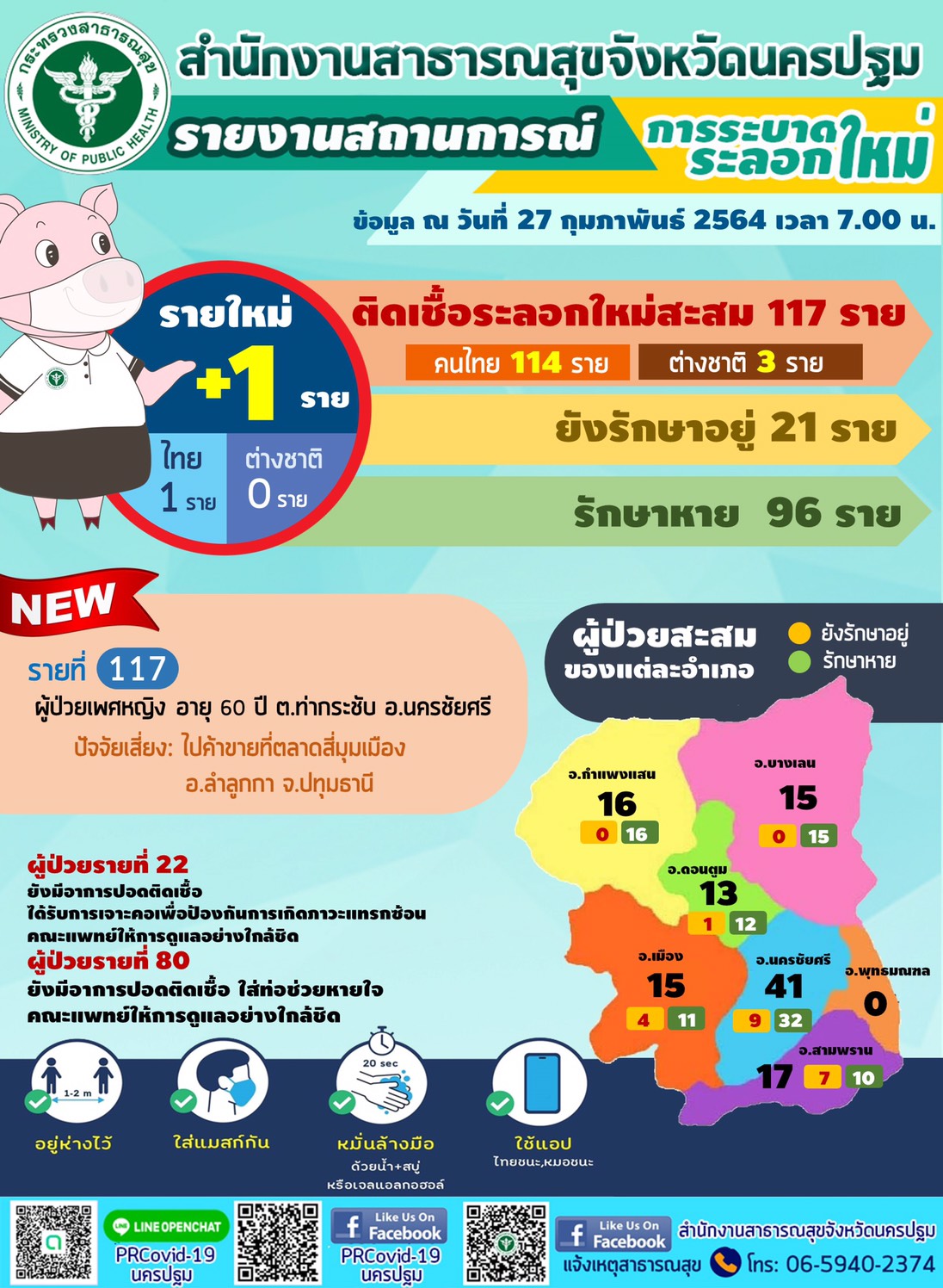 นครปฐม-สถานการณ์โควิด-19จังหวัดนครปฐม รายงานสถานการณ์ผู้ติดเชื้อไวรัสโควิด-19 ล่าสุดพบติดเชื้อเพิ่ม 1 ราย เป็นแม่ค้าเดิน...