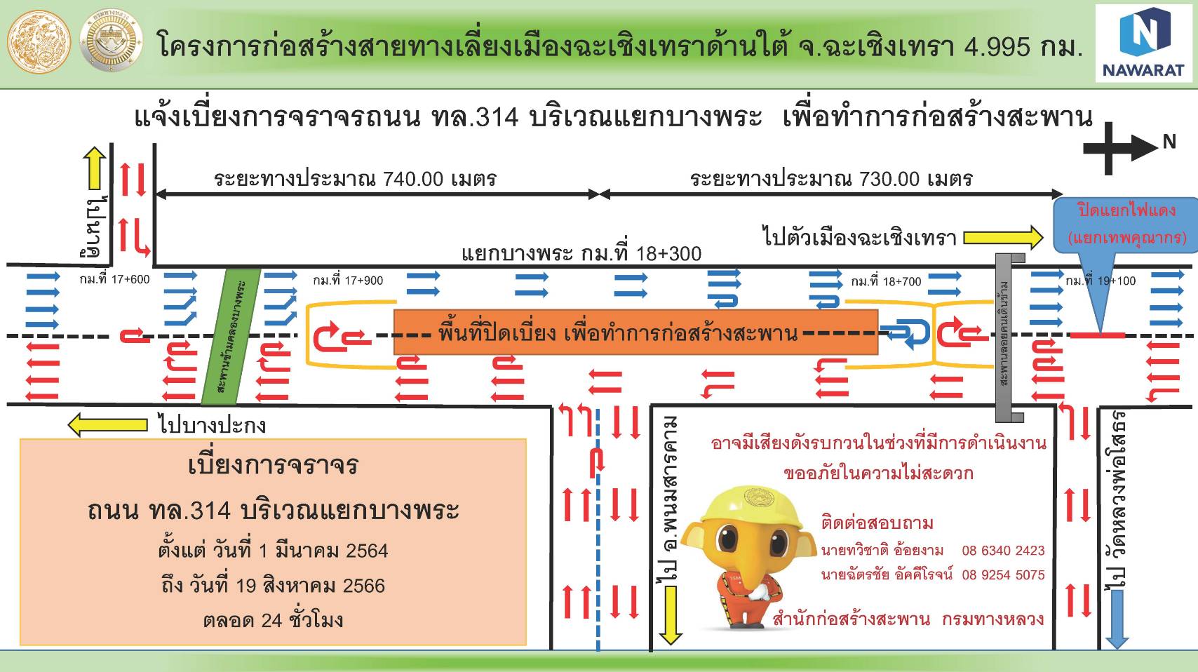 ฉะเชิงเทรา-เส้นทางแปดริ้ว-แสนภูดาษ บริเวณแยกบางพระ มีการเปลี่ยนแปลงเส้นทางใช้รถใช้ถนนต้องระวัง ดูคำเตือนการใช้เส้นท...