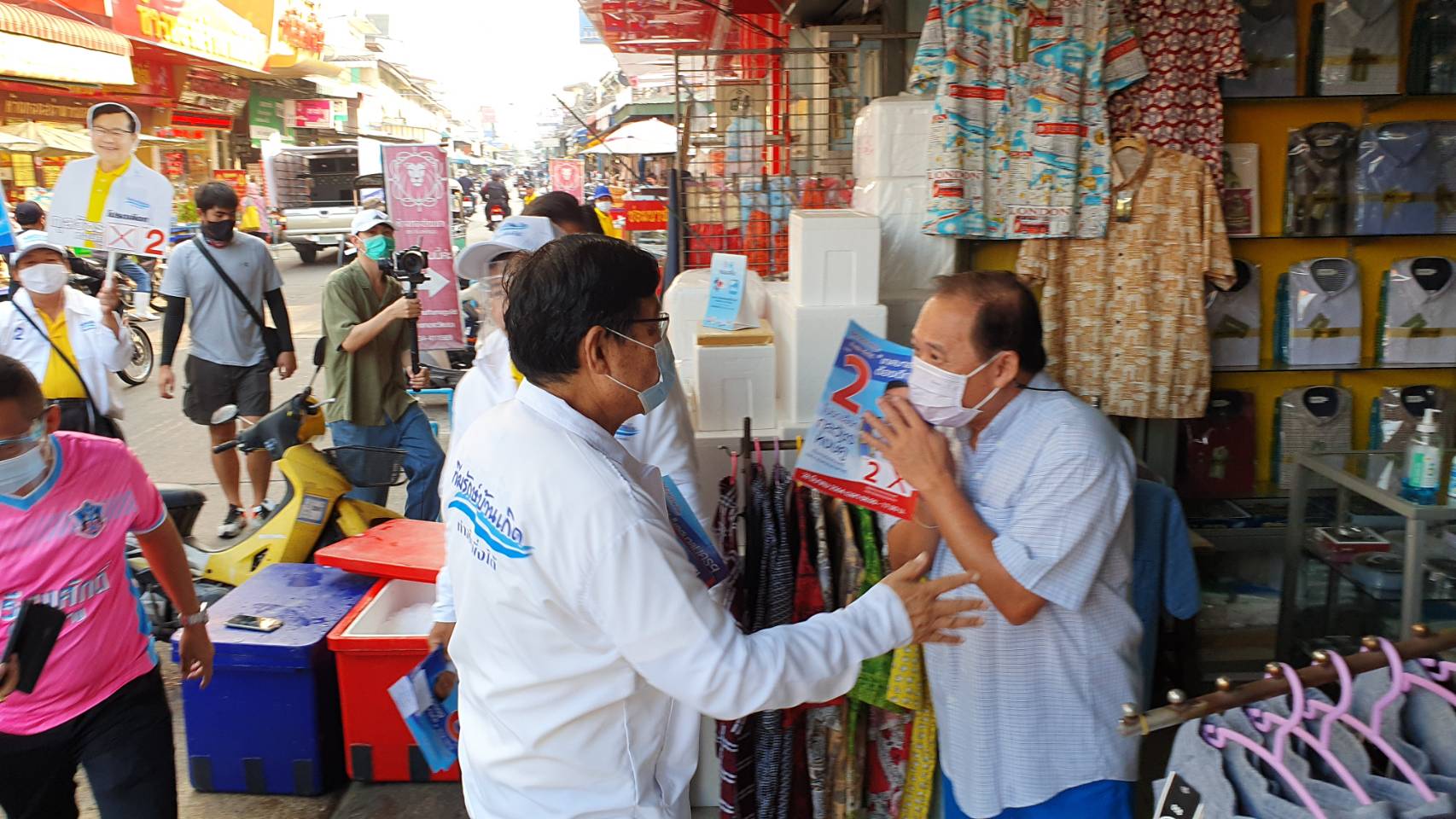 สมุทรสาคร-ผู้สมัครนายกฯ ทีม รักษ์บ้านเกิดลงพื้นที่หาเสียงพร้อมชูนโยบายแก้ปัญหาน้ำประปาและน้ำท่วม