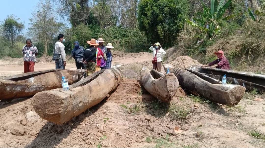 ปราจีนบุรี-ก่อนวันหวยออกพบเรือขุดตะเตียนโบราณฝังอยู่ใต้ดิน 5 ลำแห่ขอเลขเด็ด