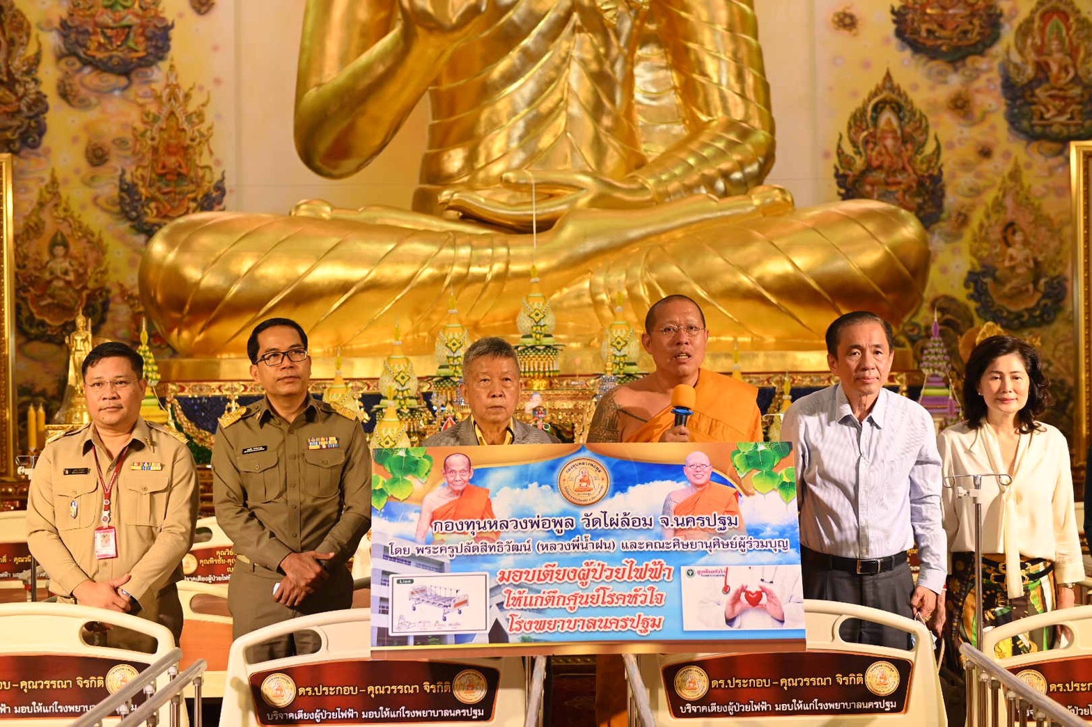 หลวงพี่น้ำฝนพาคณะศิษย์นำตียงไฟฟ้า มอบศูนย์โรคหัวใจรพ.นครปฐม1.3ล้าน