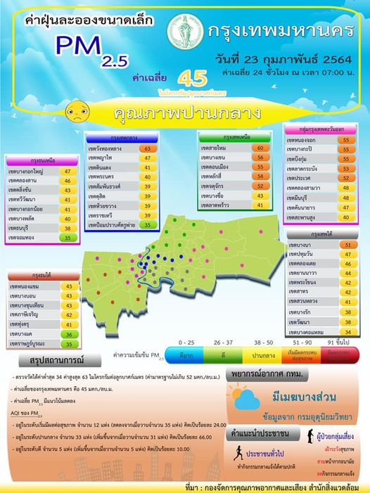 กรุงเทพฯ-สภาพอากาศในเขตพื้นที่กรุงเทพนปริมณฑล คุณภาพอากาศปานกลาง ฝุ่นเกิน 12 พื้นที่ ส่วนใหญ่อยู่ฝั่งทิศเหนือและตะวันออก...