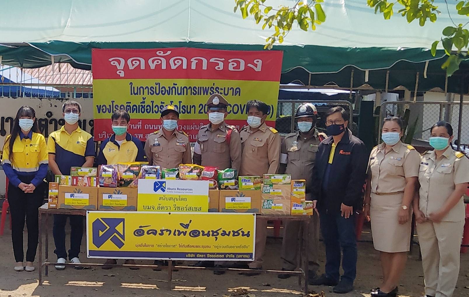 เพชรบูรณ์-เหมืองทองอัครา รีซอร์สเซสมอบน้ำดื่มและสิ่งของเป็นกำลังใจให้เจ้าหน้าที่ปฏิบัติงานจุดตรวจด้านหน้าโรงพยาบาลส่งเสร...