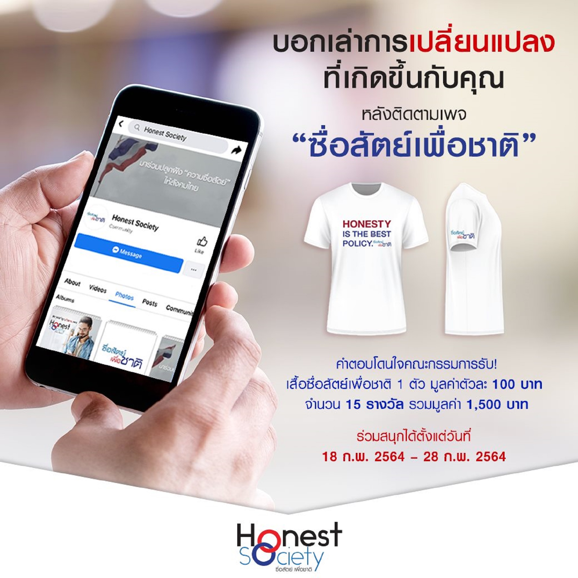 กรุงเทพฯ-โครงการ “ซื่อสัตย์ เพื่อชาติ” ชวนแฟนเพจบอกเล่าการทำดีพร้อมแจกเสื้อซื่อสัตย์ เพื่อชาติ รวม...