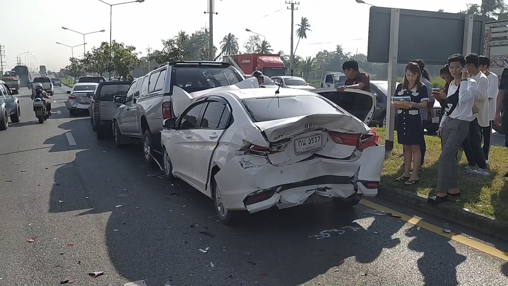 นครปฐมเกิดอุบัติเหตุรถชน8คันรวดเจ็บ1 ส่งผลถนนบรมราชชนนีติดหลายชั่วโมง