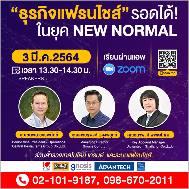 กรุงเทพฯ-ไทยแฟรนไชส์เซ็นเตอร์ ร่วมกับ แอดวานซ์เทค จัดสัมมนาออนไลน์ฟรี“ธุรกิจแฟรนไชส์รอดได้ในยุค New Normal&rd...