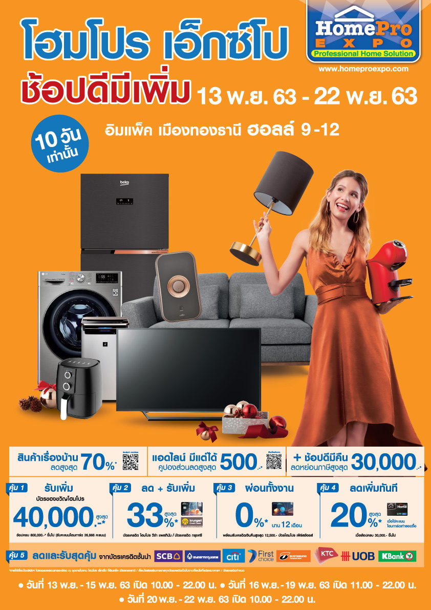 โฮมโปร เอ็กซ์โปจัดใหญ่ส่งท้ายปี2563 ช้อปดีมีลด70%ที่อิมแพ็คฯ13-22พ.ย.นี้
