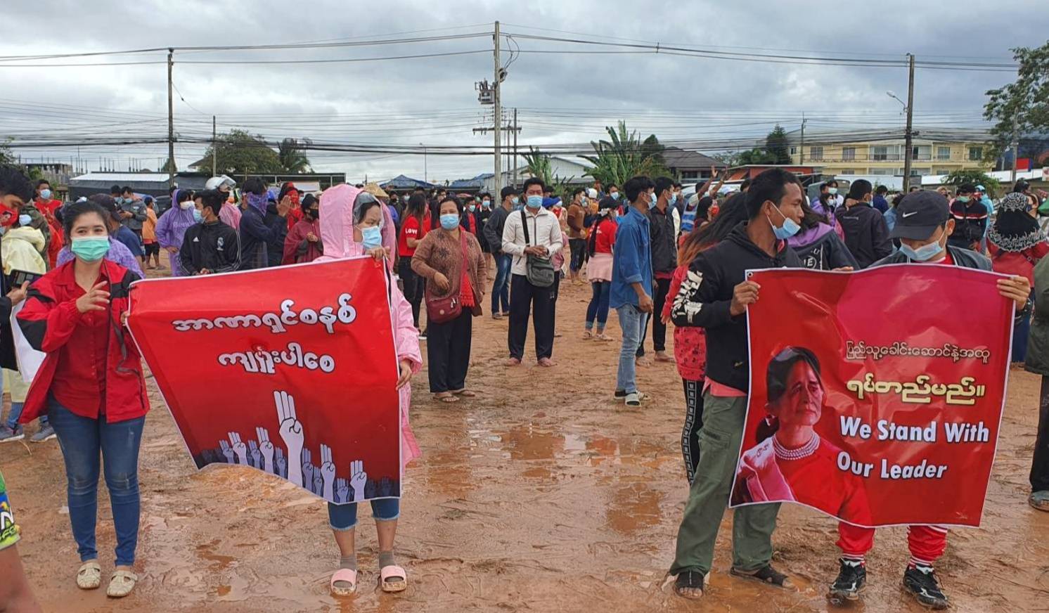 ชาวพม่าชุมนุมที่แม่สายคัดค้านการปฏิวัติ